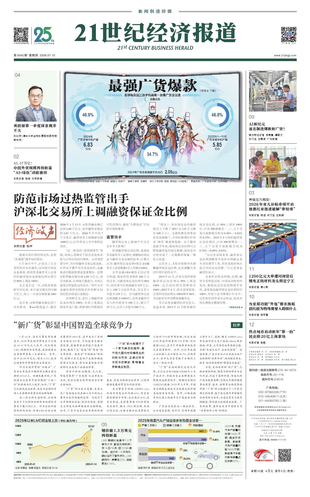 随着市场行情持续走热,监管“逆周期”调节如约而至。1月14日中午,沪深北三大交易所同步发布通知,宣布经中国证监会批准,将投资者融资买入证券时的融资保证金最低比例