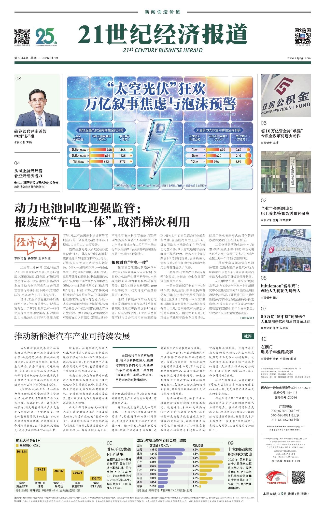 2026年1月16日,工业和信息化部、国家发展改革委、生态环境部、交通运输部、商务部、市场监管总局等六部门联合印发《新能源汽车废旧动力电池回收和综合利用管理暂行