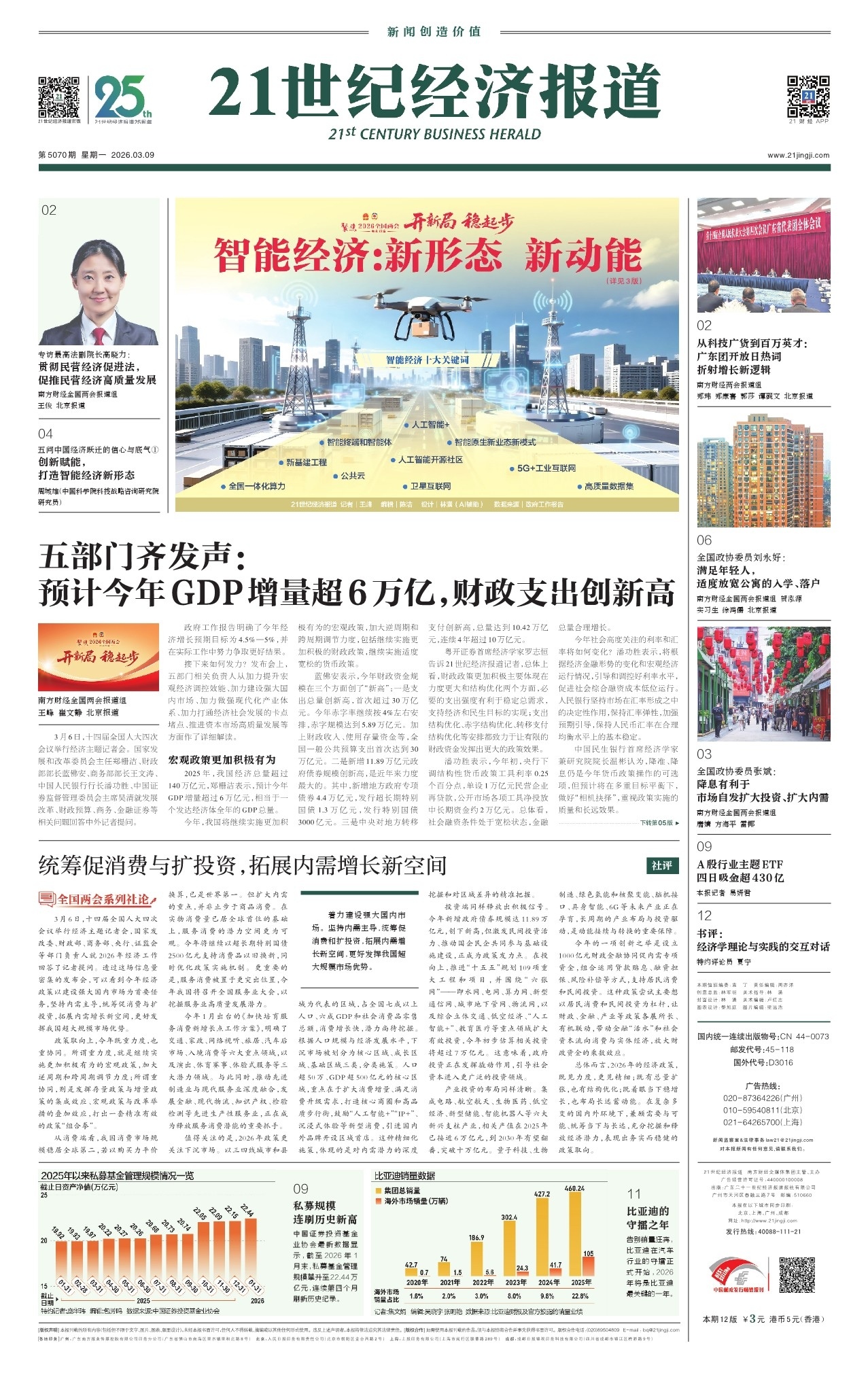 3月5日,十四届全国人大四次会议开幕,政府工作报告提出的年度经济增长目标及宏观政策导向引发外界关注。当天,渣打银行中国高级经济师廖薇在接受21世纪经济报道记者专