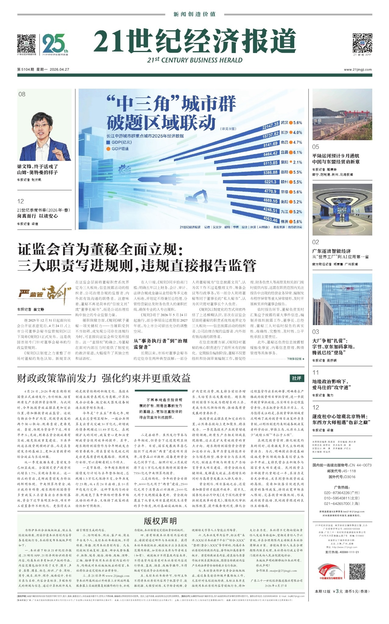 为维护本社合法版权权益,制止未经授权转载、剽窃抄袭本社原创内容等各类侵权行为,本社特发布本版权声明如下:一、本社旗下标注21世纪经济报道、21财经APP、21经